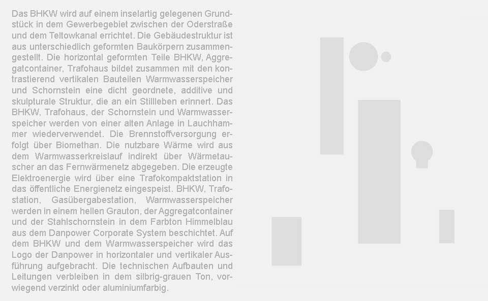 Bauherr: Danpower Energie Service GmbH, Leistungen: Grundlagenermittlung, Vorentwurf, Entwurf, Genehmigungsplanung